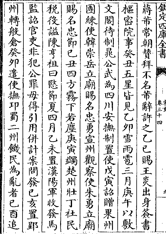 藏四库为二辛未诏四川制置司岁择梁洋义士材武者二人遣赴枢密院壬申立任子参选覆试法夏四月