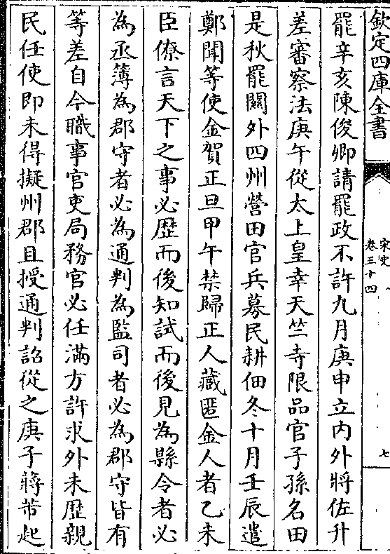 时诏台谏侍从两省官指陈阙失辛已诏侍从两省台谏卿监郎官举堪郎官寺监丞监司郡守者癸已罢川