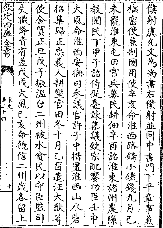 使以治民武臣一人充都总管以治兵三载视其成以议诛赏从之乙酉振恤淮南水旱州县乙未叶衡罢丁