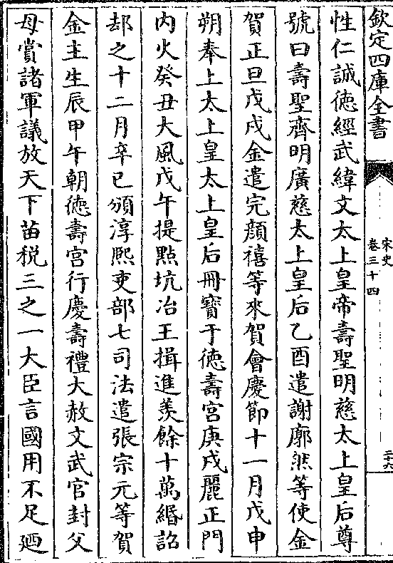 号曰寿圣齐明广慈太上皇后乙酉遣谢廓然等使金贺正旦戊戌金遣完颜禧等来贺会庆节十一月戊申
