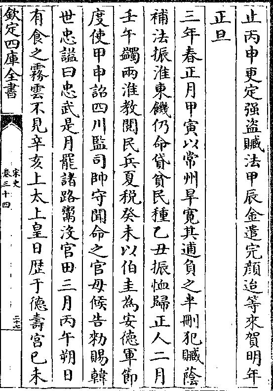 三年春正月甲寅以常州旱宽其逋负之半删犯赃荫