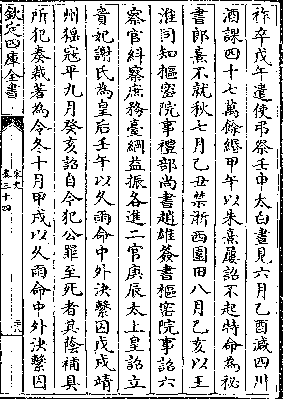 祚卒戊午遣使吊祭壬申太白昼见六月乙酉减四川酒课四十七万馀缗甲午以朱熹屡诏不起特命为秘