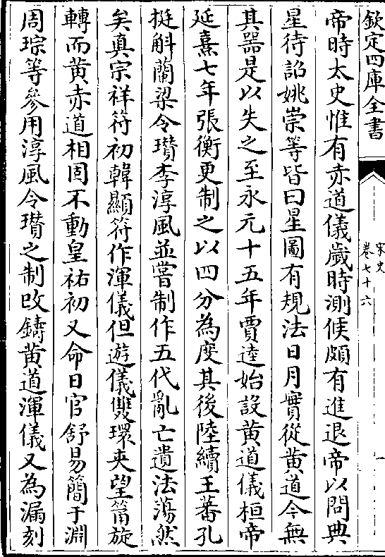 帝时太史惟有赤道仪岁时测候颇有进退帝以问典