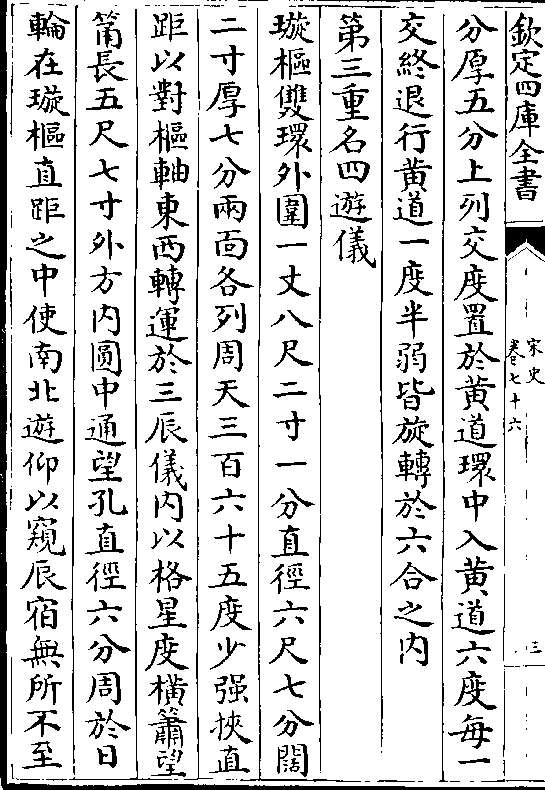 交终退行黄道一度半弱皆旋转于六合之内第三重名四游仪