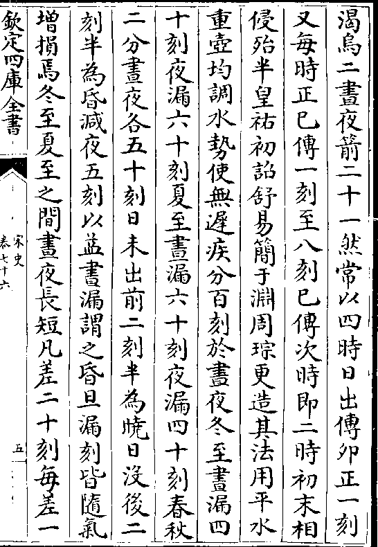 渴乌二昼夜箭二十一然常以四时日出传卯正一刻又每时正巳传一刻至八刻巳传次时即二时初末相