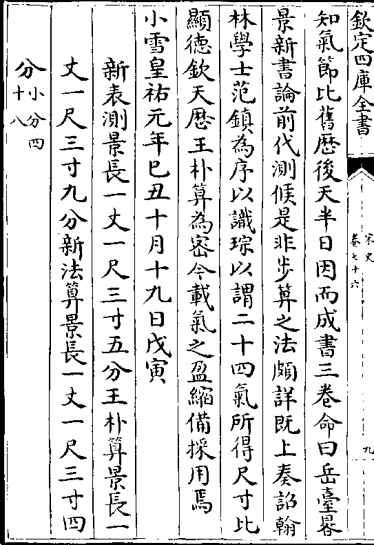 景新书论前代测候是非步算之法颇详既上奏诏翰林学士范镇为序以识琮以谓二十四气所得尺寸比