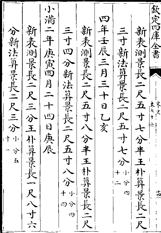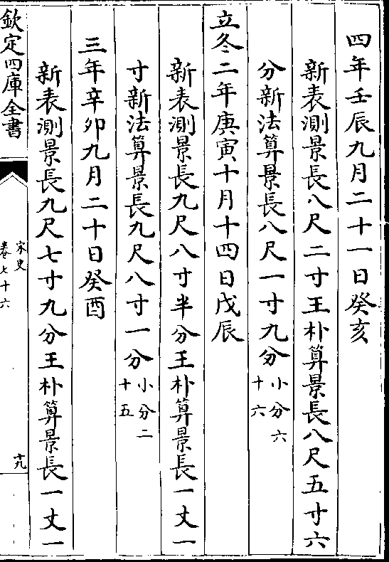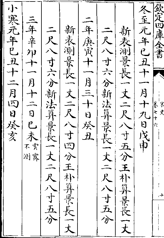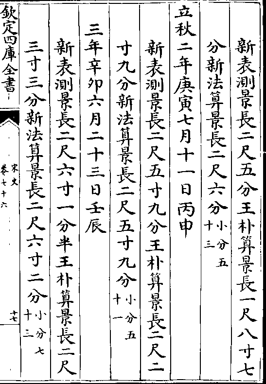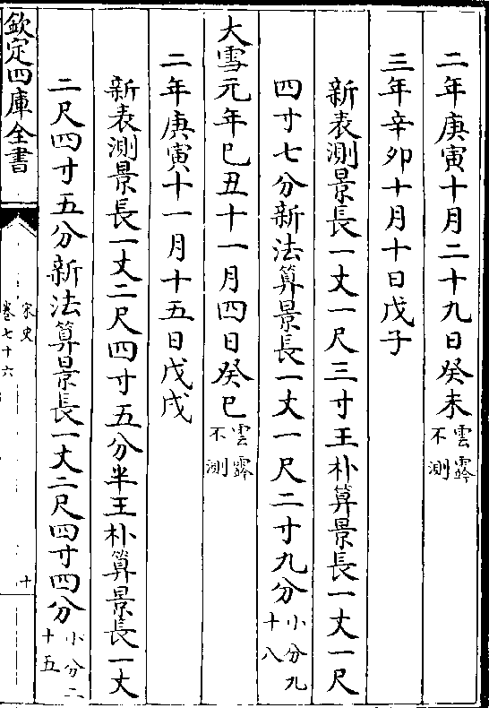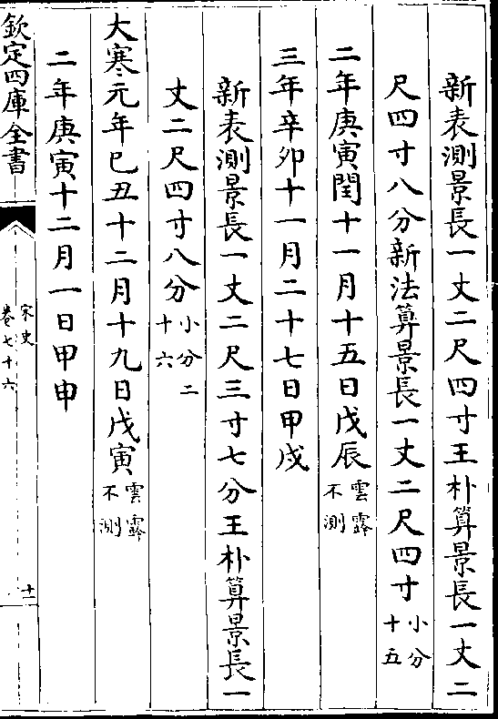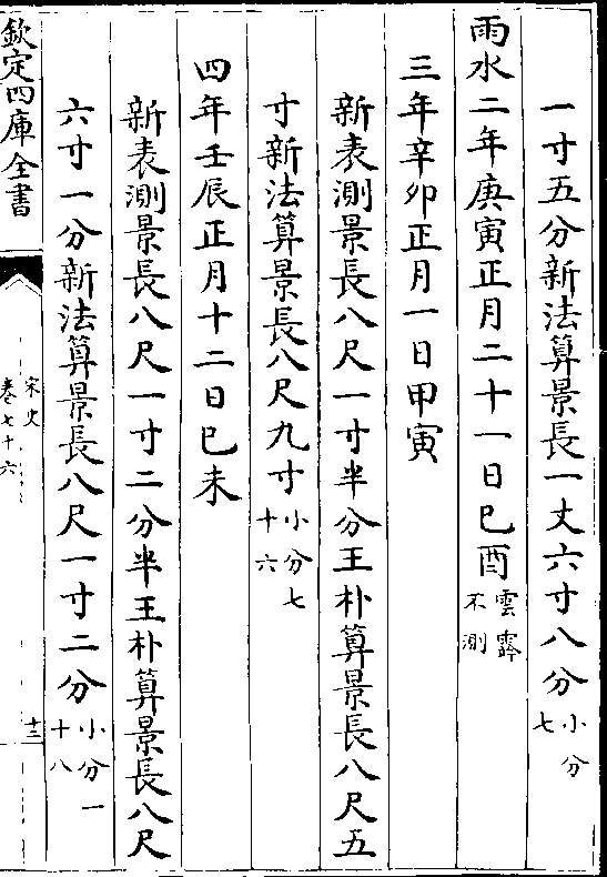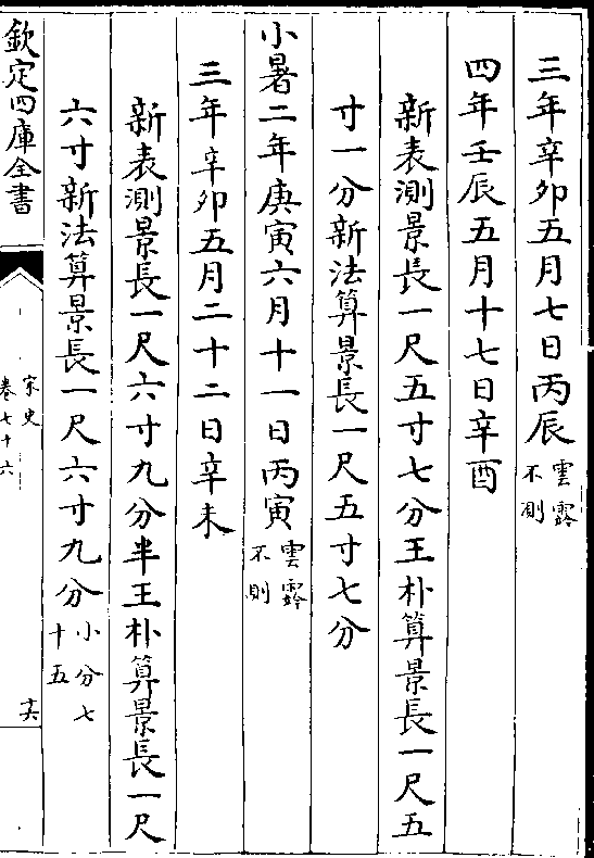 二十四气岳台晷景所得尺寸置于司天监候之三年