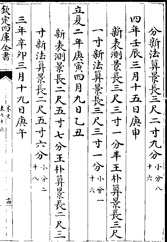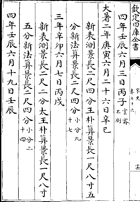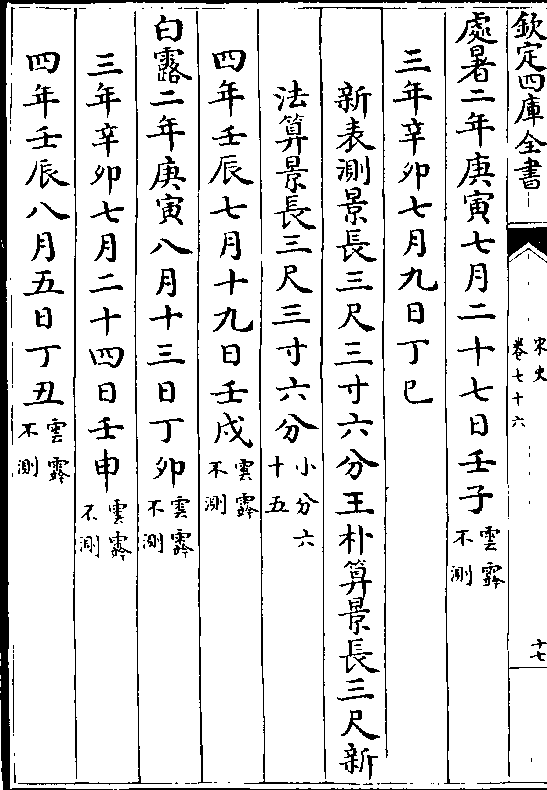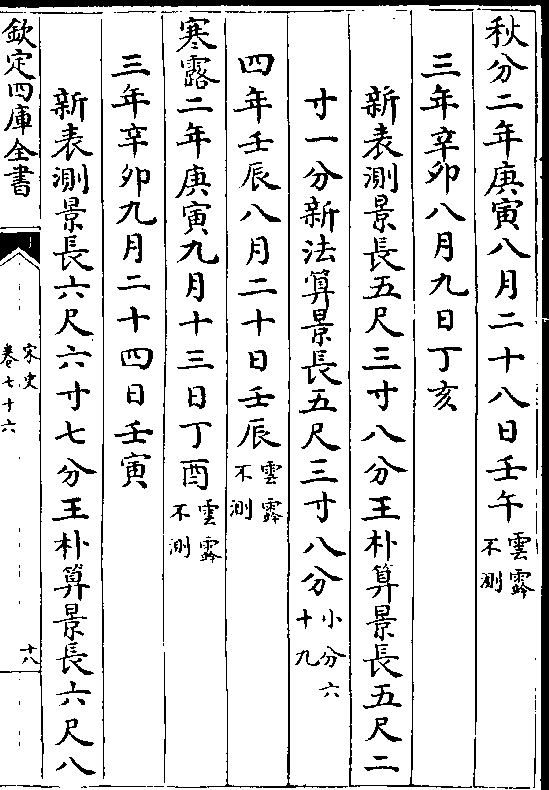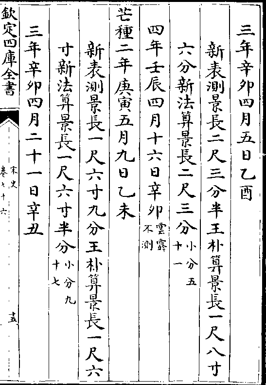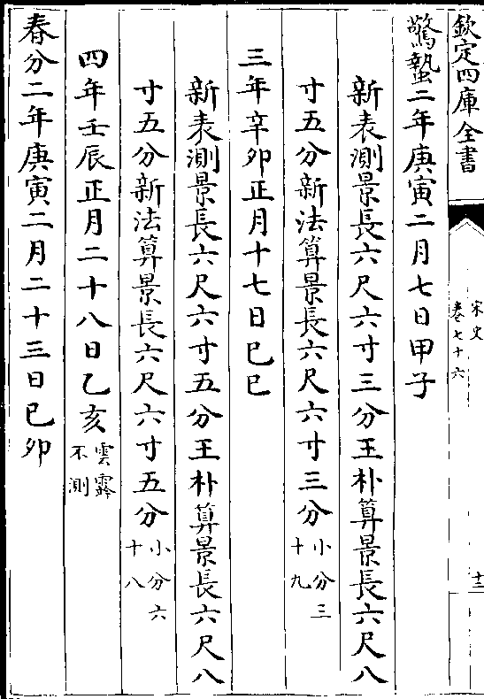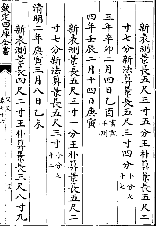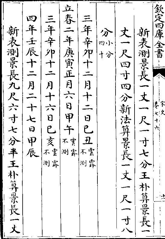 二十四气岳台晷景所得尺寸置于司天监候之三年