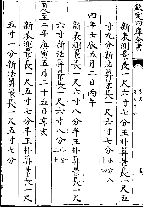 新表测景长一丈一尺三寸五分王朴算景长一