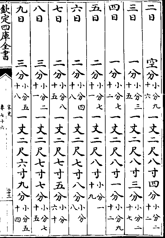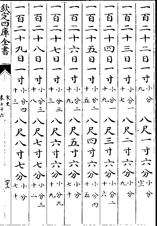 一百二十二日一寸(小分九) 八尺一寸六分(小分空)一百二十三日一寸(小分一十七)八尺二寸六分(小分九)