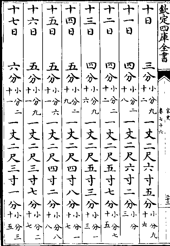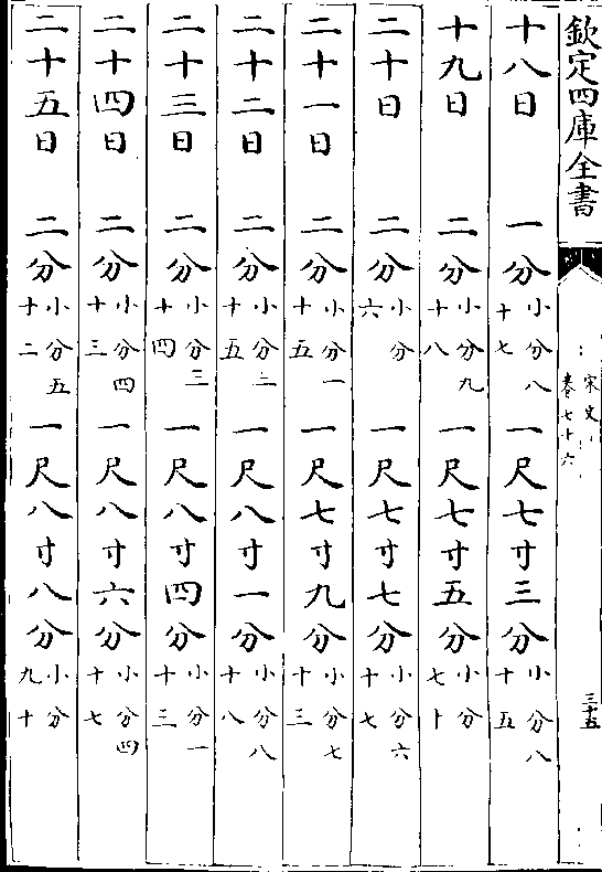 一百四十七日九分(小分九十六)一丈七寸五分(小分七十)一百四十八日九分(小分八十五)一丈八寸五分(小分六十六)