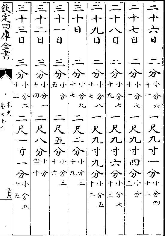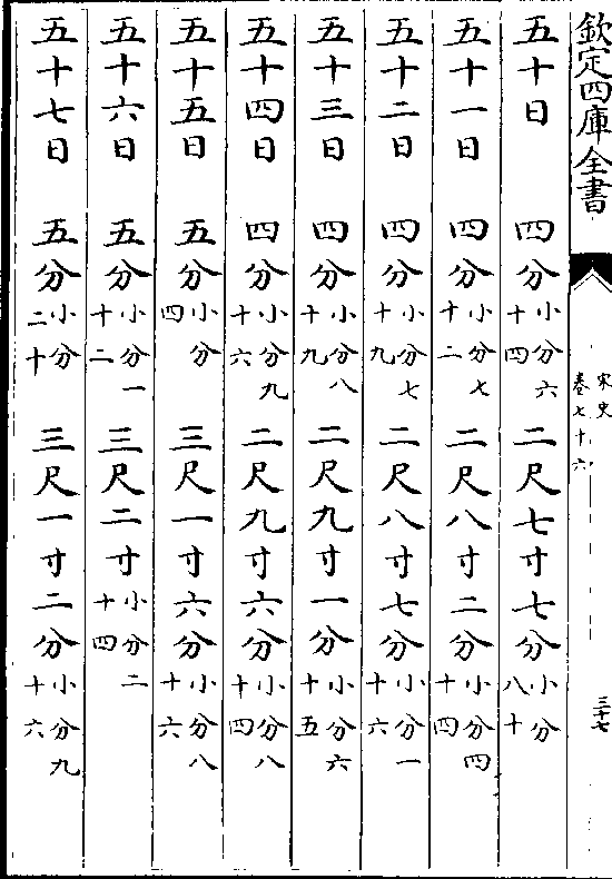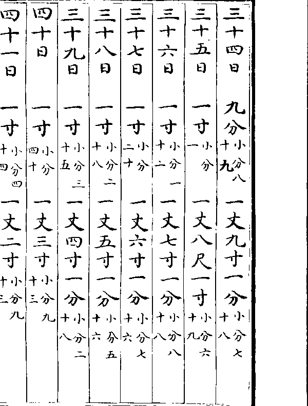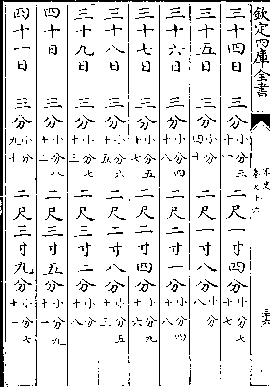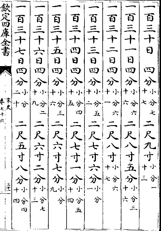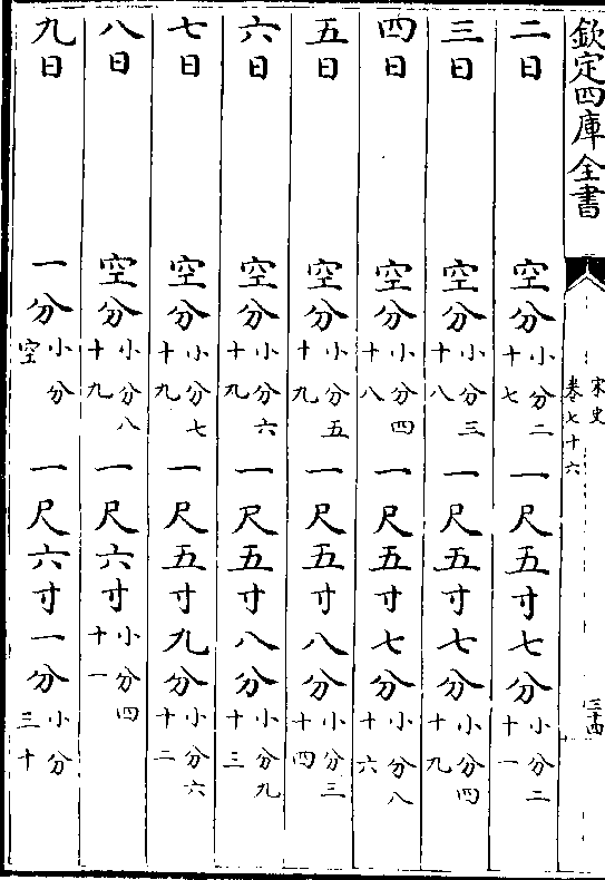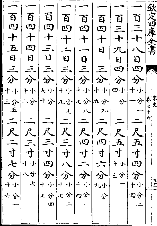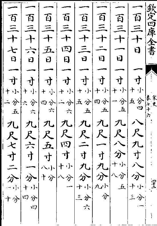 一百三十一日一寸(小分五十一)九尺八分(小分五十八)一百三十二日一寸(小分五十四)九尺一寸九分(小分九)