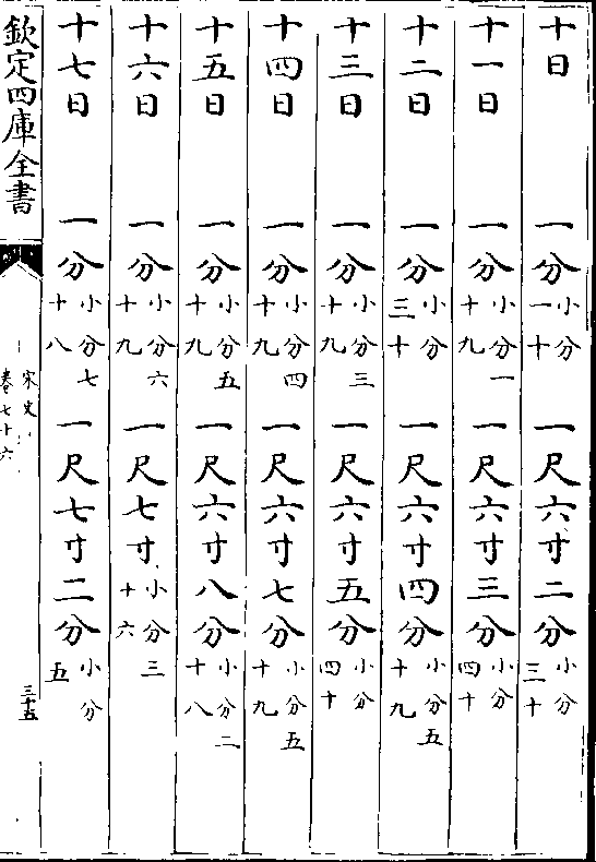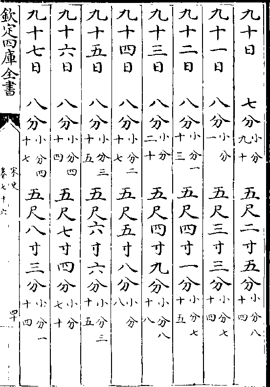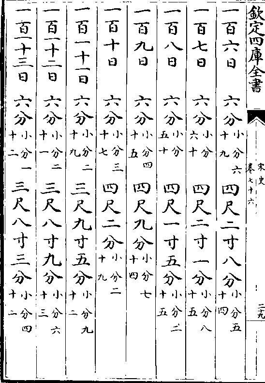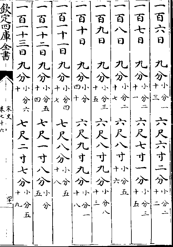 一百六日 九分(小分一十三)六尺六寸二分(小分二十二)一百七日 九分(小分二十一)六尺七寸一分(小分三十五)