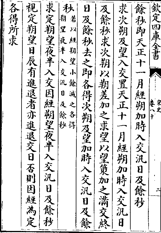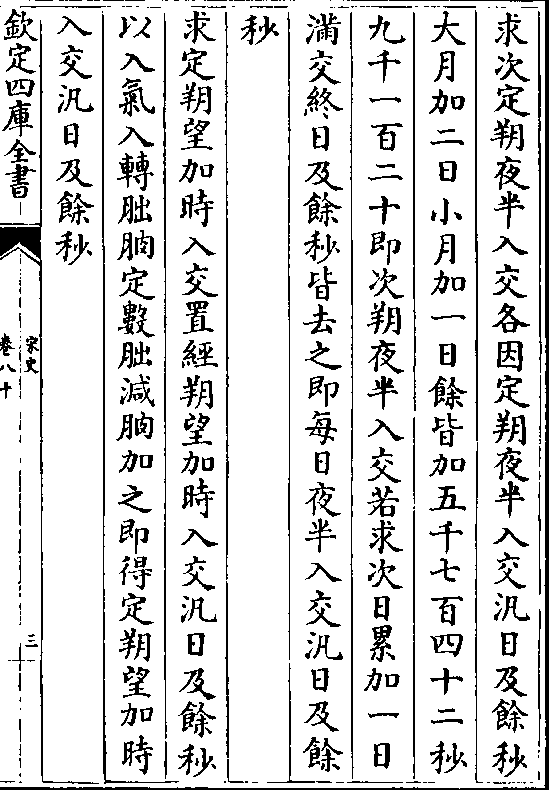 求次朔及望入交置天正十一月经朔加时入交汎日及馀秒求次朔以朔差加之求望以望策加之满交终