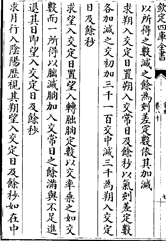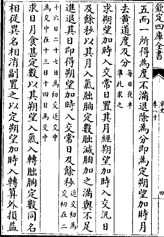 去黄道度及分(每日夜半准此求之)求朔望加时入交常日置其月经朔望加时入交汎日