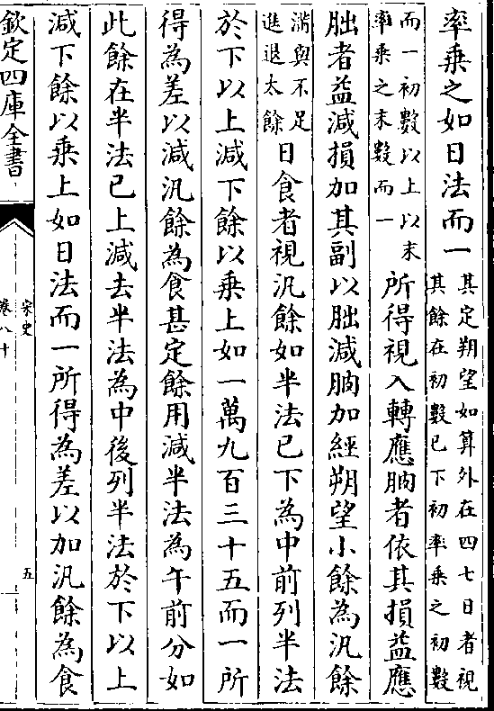 率乘之如日法而一(其定朔望如算外在四七日者视其馀在初数已下初率乘之初数)(而一初数以上以末率乘之末数而一)所得视入转应朒者依其损益应