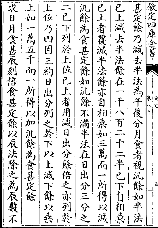 得为差以减汎馀为食甚定馀用减半法为午前分如