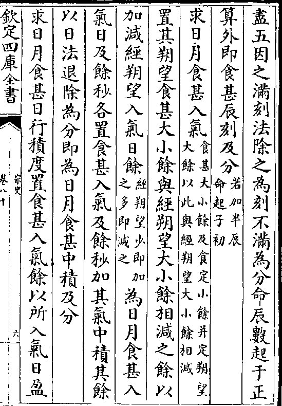 求日月食甚入气(食甚大小馀及食定小馀并定朔望大馀以此与经朔望大小馀相减)