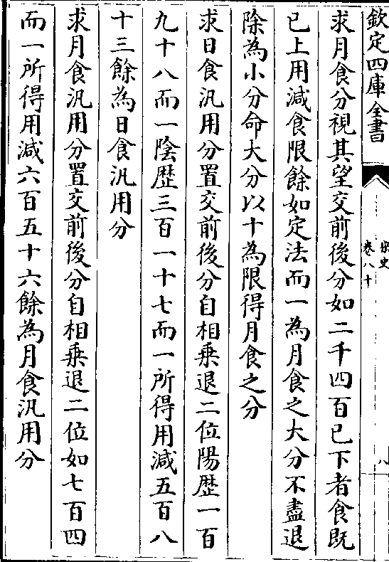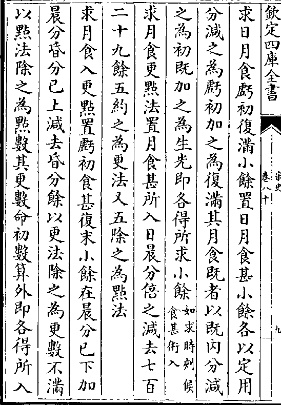 日月食甚中积及分九字此又一条也刋本既脱遂