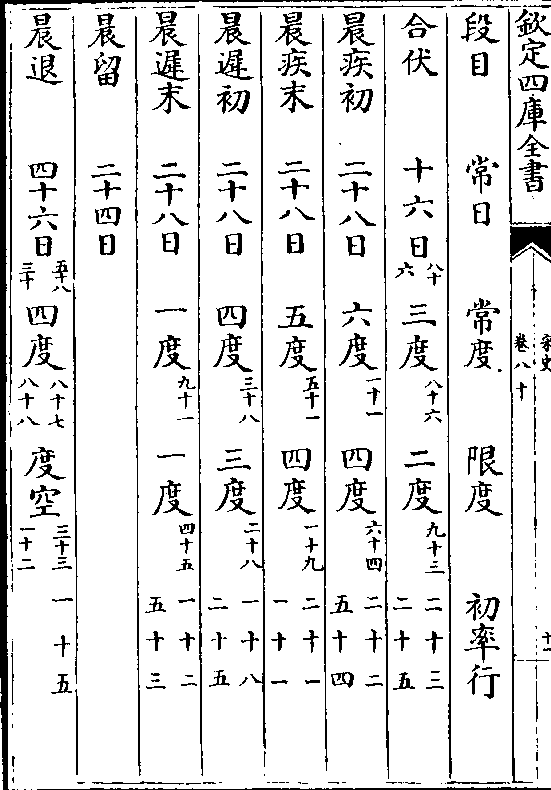 入交积度及分以定朔望加时入转迟疾度迟减疾加