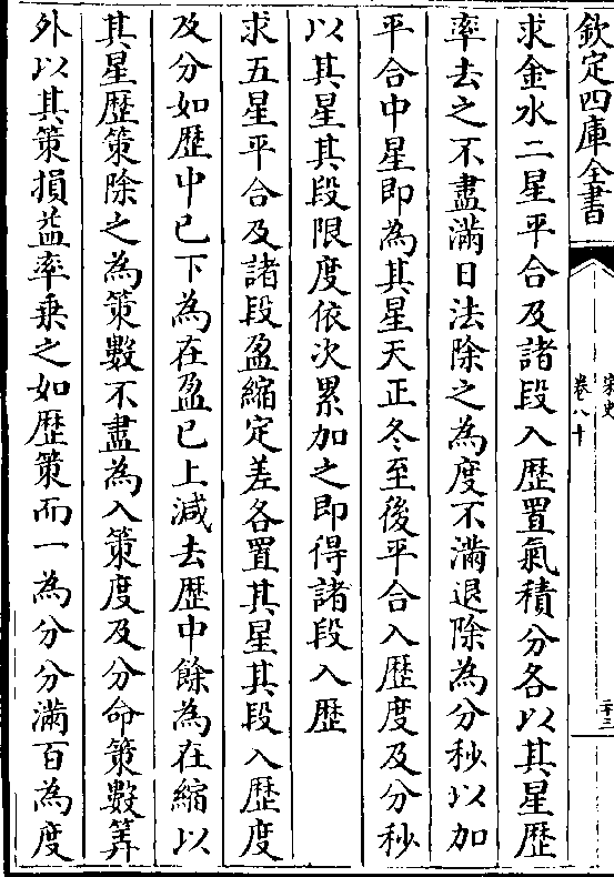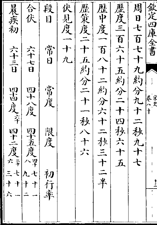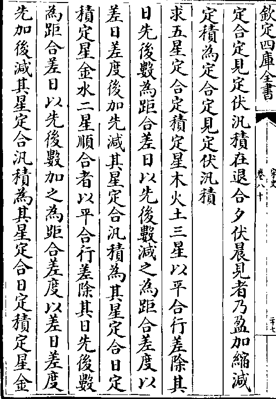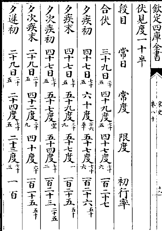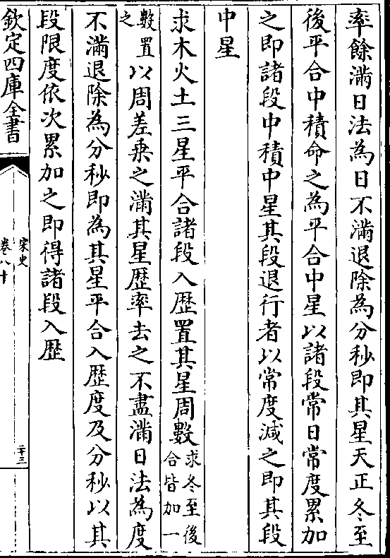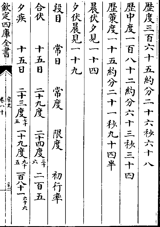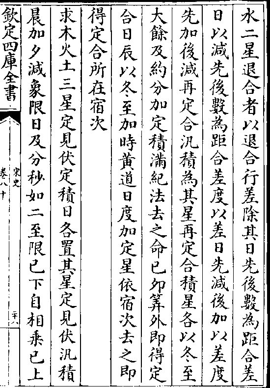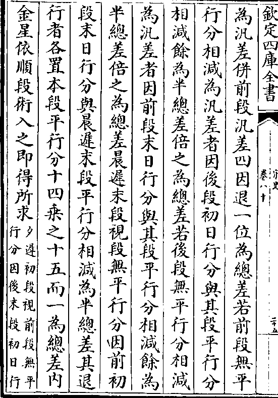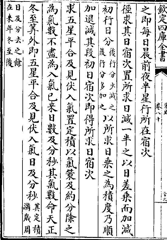 至限馀亦自(目相)乘如法而一所得为分(冬至后晨夏至后夕以十八为)(法冬至后夕夏至后晨以七十五为法)以伏见度乘之十五除之为差满