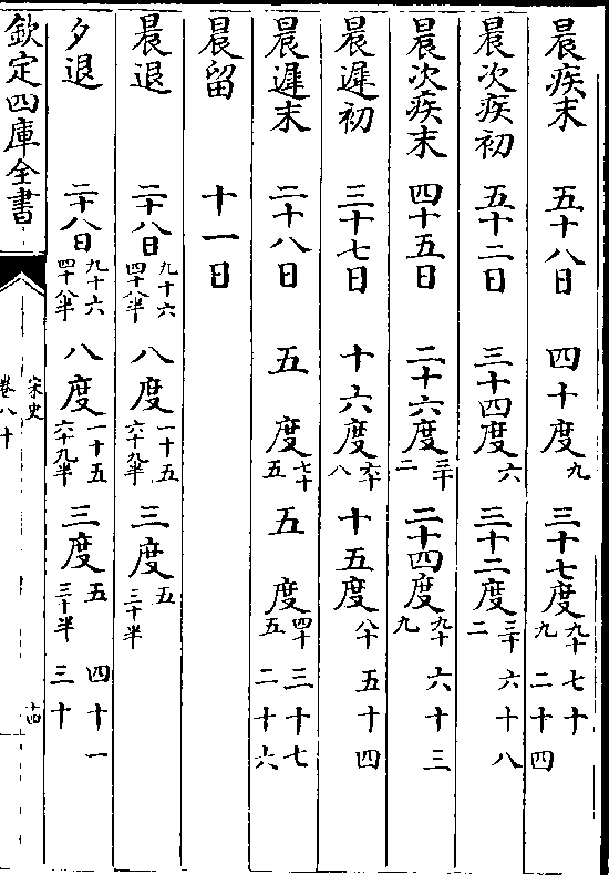 (晨见夕伏减之夕见晨伏加之)其水星夕疾在大暑气初日至立冬气