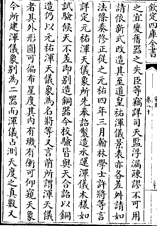 请依新式改造其至道皇祐浑仪景表亦各差舛请如法条奏修正从之元祐四年三月翰林学士许将等言