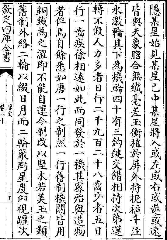 隐某星始见某星已中某星将入或左或右或迟或速皆与天象吻合无纤毫差玉衡植于屏外持扼枢斗注