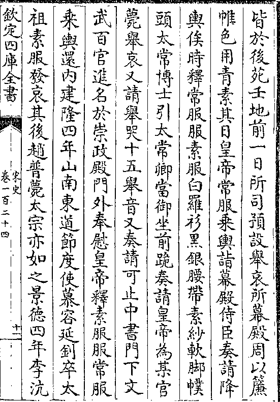 其日乘舆至幕殿服素服太常博士引太常卿当御坐前跪奏请皇帝为夏王赵德明薨举哀又奏请十五举