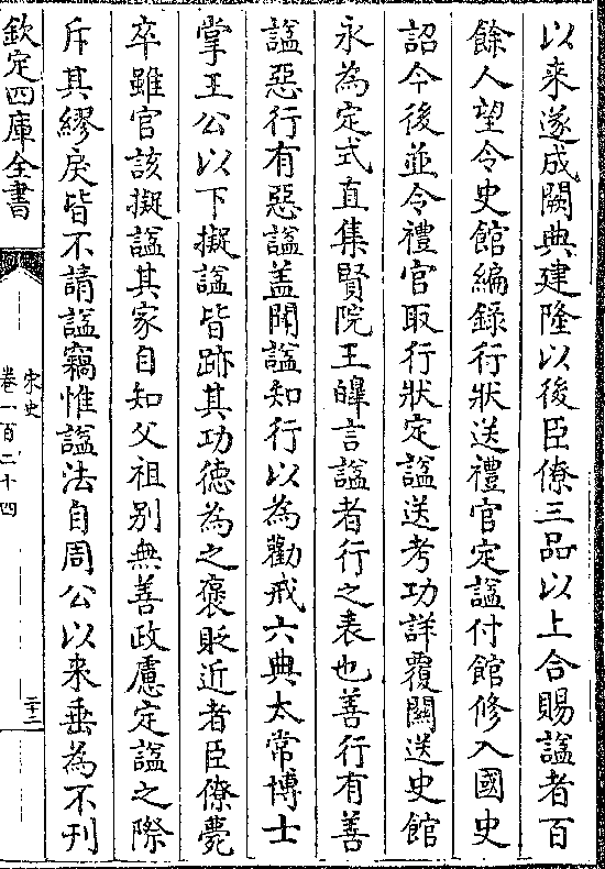 以来遂成阙典建隆以后臣僚三品以上合赐谥者百馀人望令史馆编录行状送礼官定谥付馆修入国史