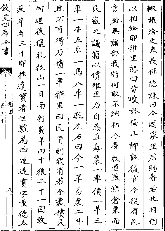 民盗之议籍以偿雅里乃自为直每粟一车偿一羊三