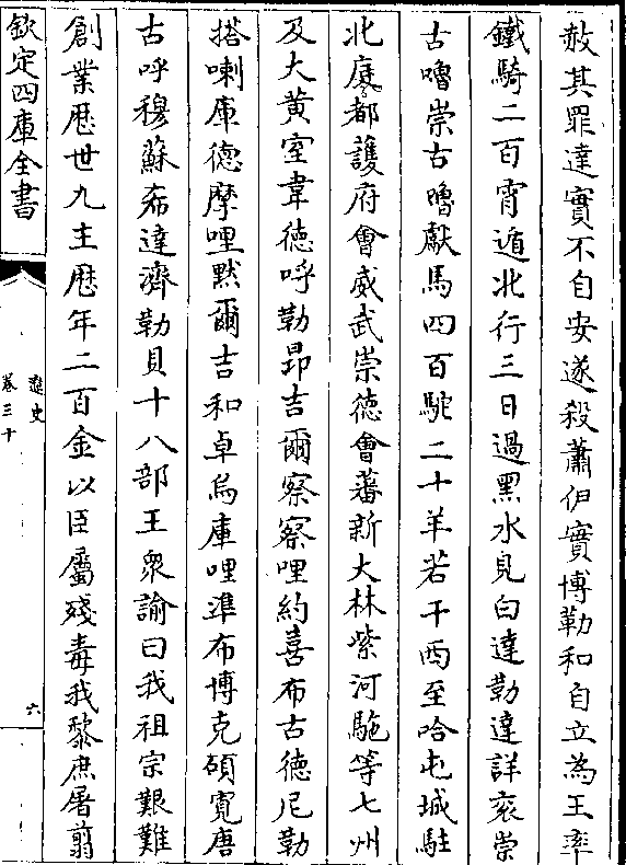 赦其罪达实不自安遂杀萧伊实博勒和自立为王率铁骑二百宵遁北行三日过黑水见白达勒达详衮崇