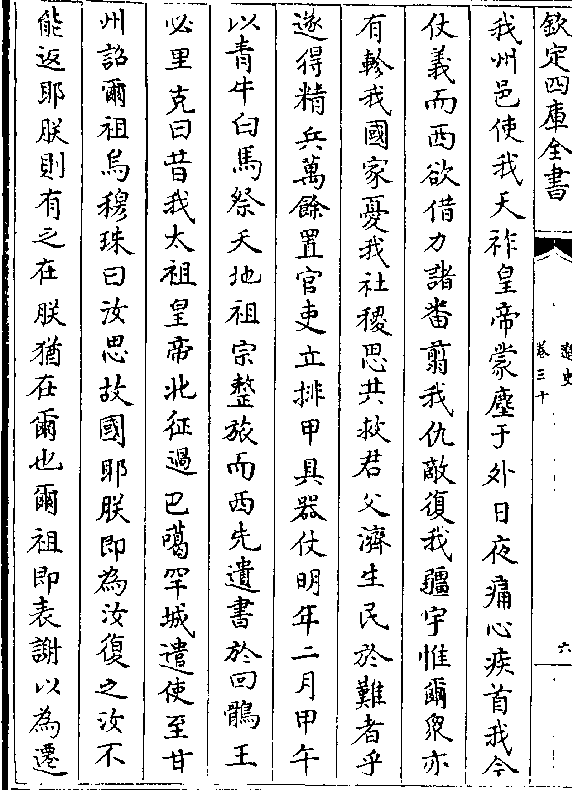 我州邑使我天祚皇帝蒙尘于外日夜痛心疾首我今仗义而西欲借力诸番剪我仇敌复我疆宇惟尔众亦