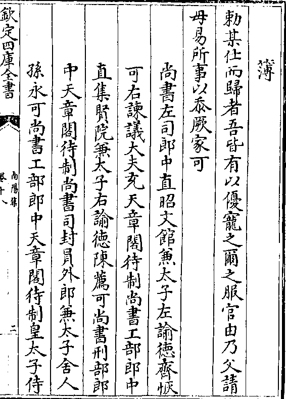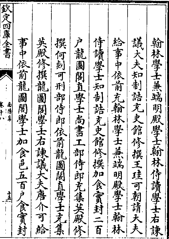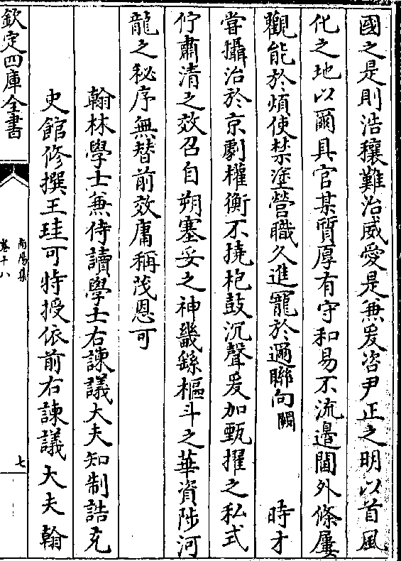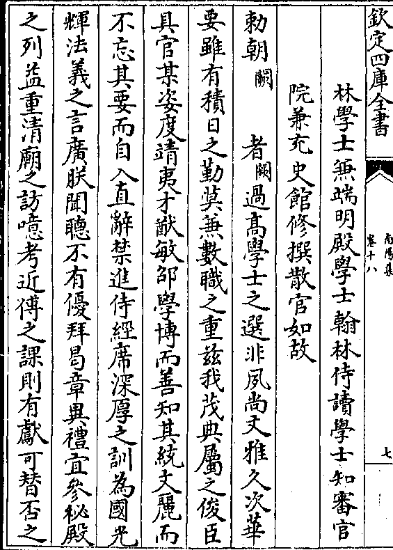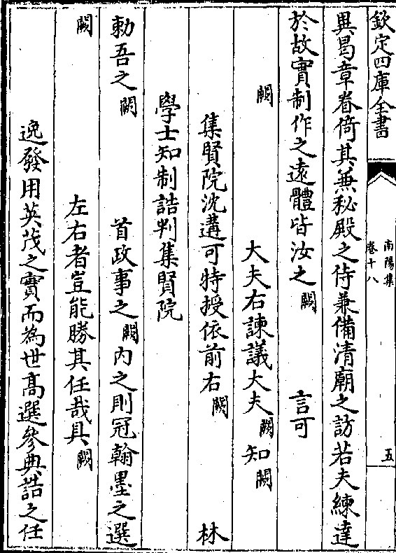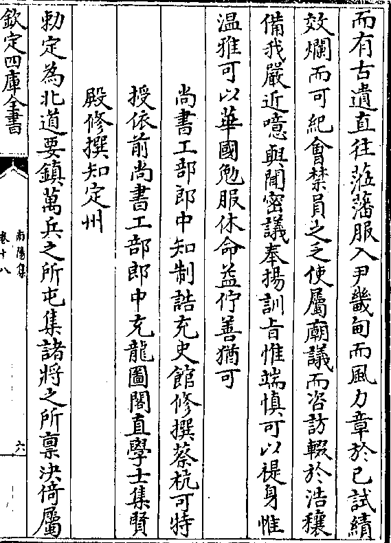 异曷章眷倚其兼秘殿之侍兼备清庙之访若夫练达于故实制作之远体皆汝之(阙) 言可