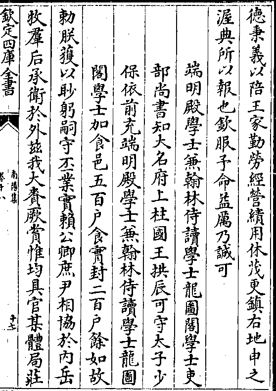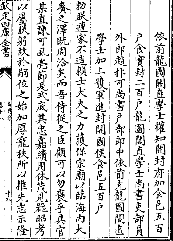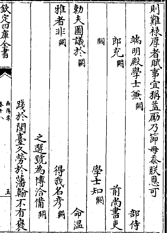 则难禄厚者赋事宜称益励乃节毋忝朕恩可端明殿学士兼(阙) 部侍