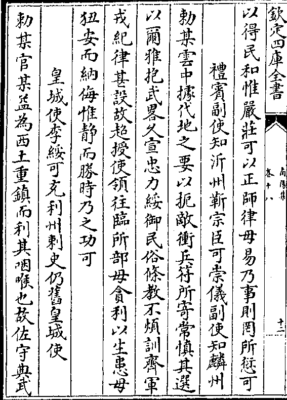 以得民和惟严庄可以正师律毋易乃事则罔所愆可礼宾副使知沂州靳宗臣可崇仪副使知麟州