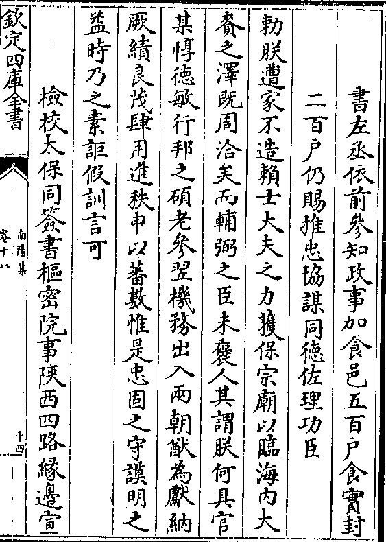 书左丞依前参知政事加食邑五百户食实封二百户仍赐推忠协谋同德佐理功臣