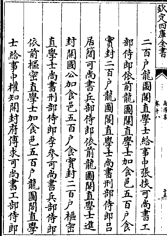 二百户龙图阁直学士给事中张掞可尚书工部侍郎依前龙图阁直学士加食邑五百户食