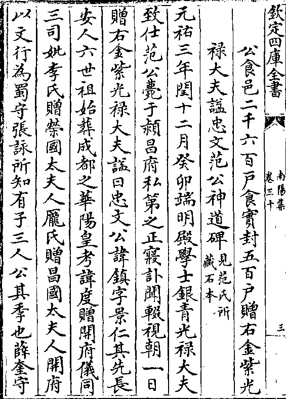 公食邑二千六百户食实封五百户赠右金紫光禄大夫谥忠文范公神道碑(见范氏所藏石本)