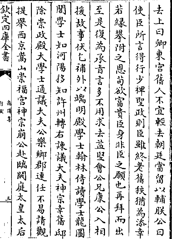 官宰相庞籍言公有异材不求进取特除直秘阁为开封府推官擢拜起居舍人知諌院兼管勾国子监上疏