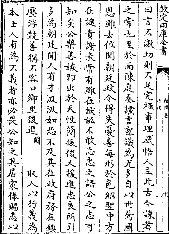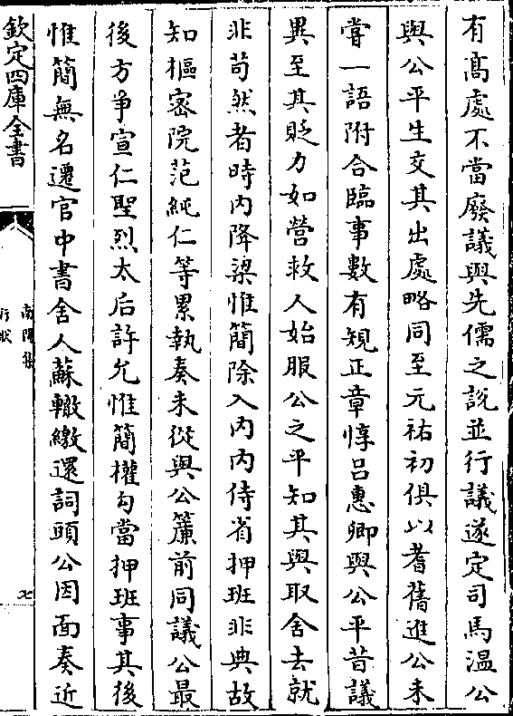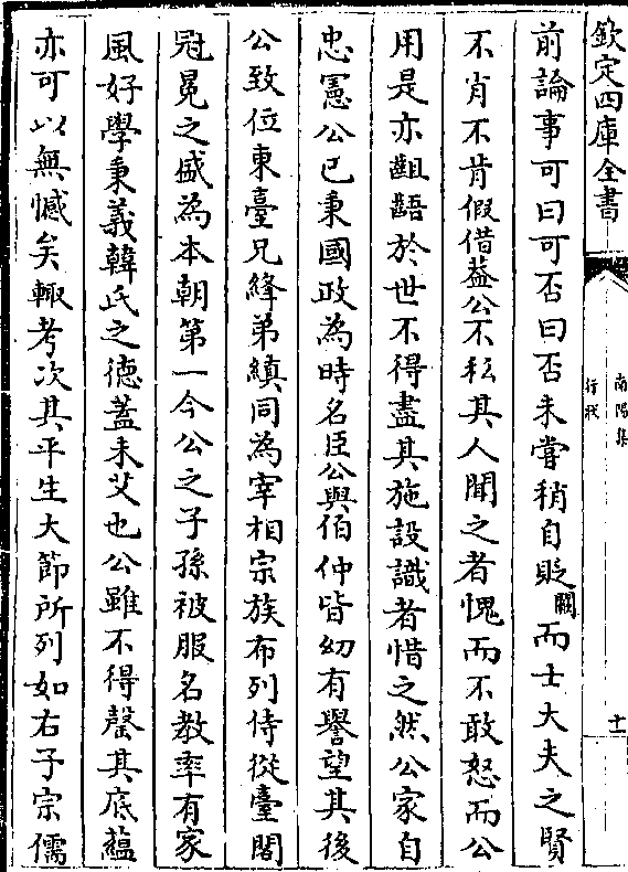 前论事可曰可否曰否未尝稍自贬(阙)而士大夫之贤不肖不肯假借盖公不私其人闻之者愧而不敢怒而公