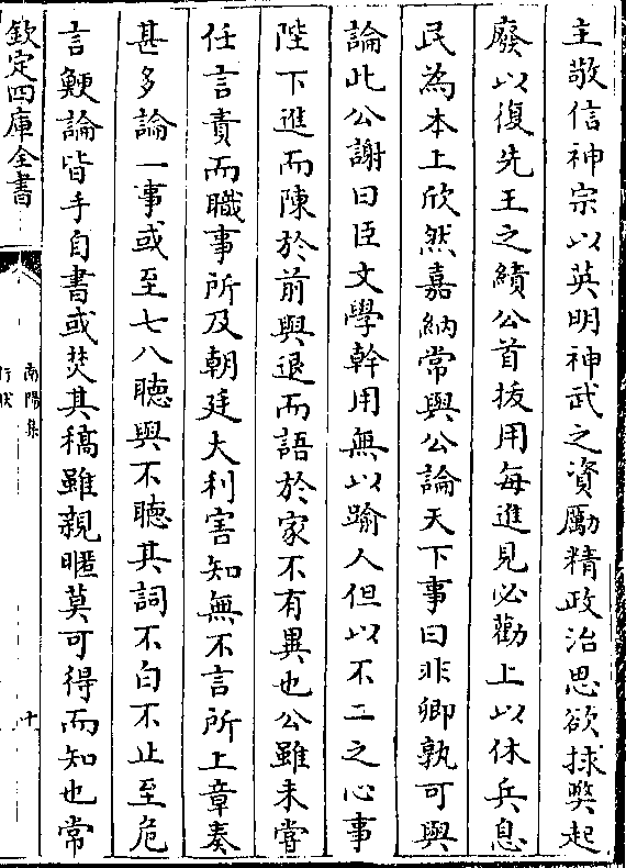 主敬信神宗以英明神武之资励精政治思欲救弊起废以复先王之绩公首拔用每进见必劝上以休兵息