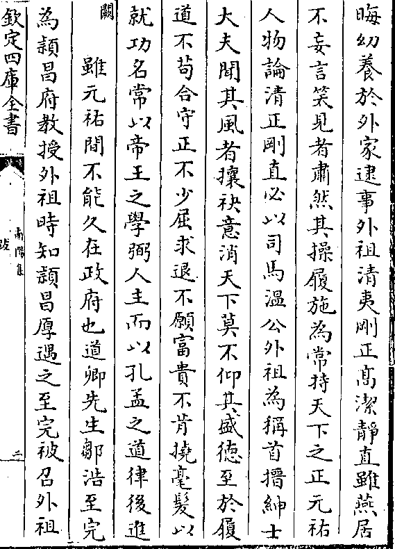 晦幼养于外家逮事外祖清夷刚正高洁静直虽燕居不妄言笑见者肃然其操履施为常持天下之正元祐