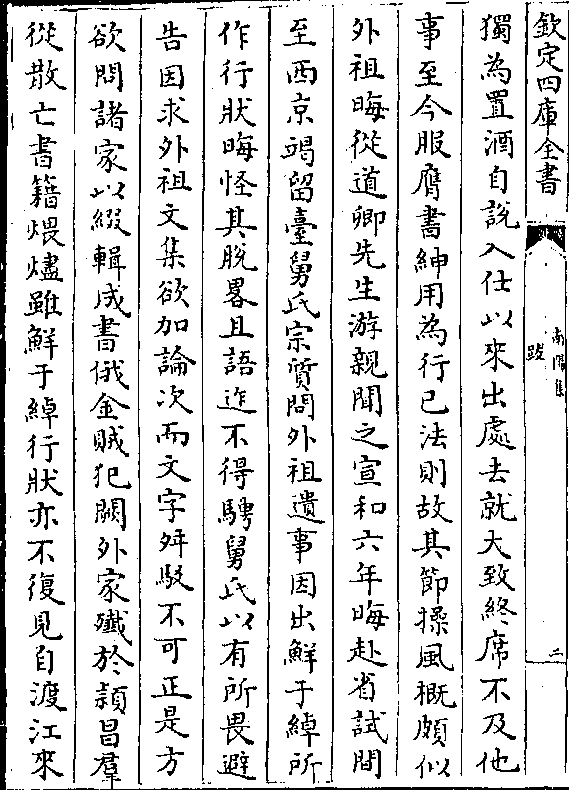 独为置酒自说入仕以来出处去就大致终席不及他事至今服膺书绅用为行已法则故其节操风概颇似