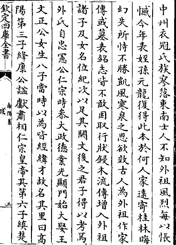 中州衣冠氏族寥落东南士人不知外祖风烈每以怅憾今年表侄孙元龙复得此本于何人家远寄桂林晦