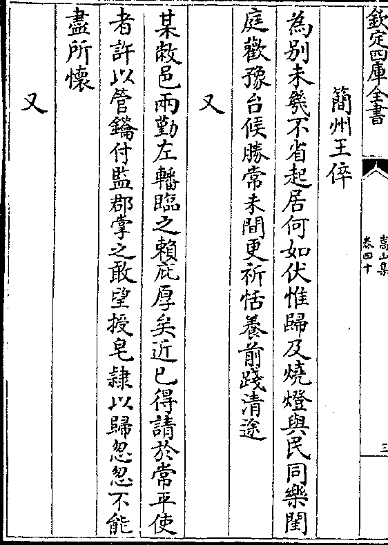 简州王倅为别未几不省起居何如伏惟归及烧灯与民同乐闺