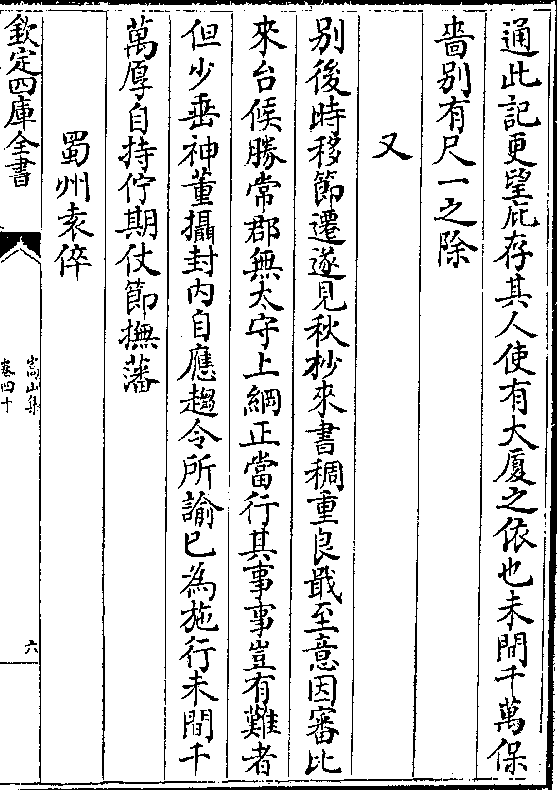 通此记更望庇存其人使有大厦之依也未间千万保啬别有尺一之除