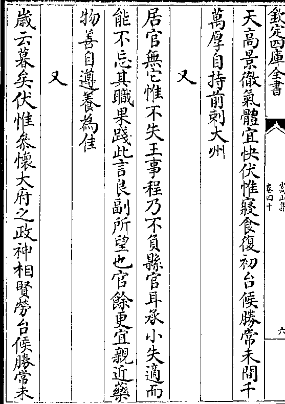 天高景彻气体宜快伏惟寝食复初台候胜常未间千万厚自持前刺大州