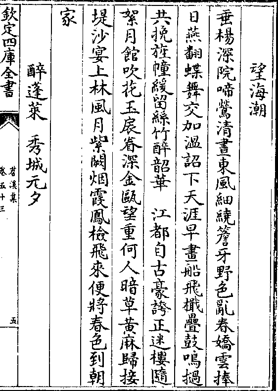 望海潮垂杨深院啼莺清昼东风细绕檐牙野色乱春娇云捧