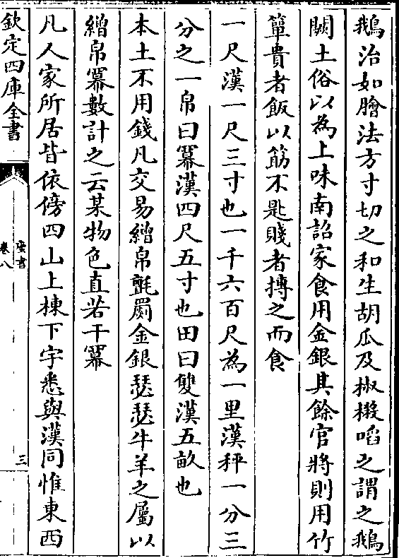 鹅治如脍法方寸切之和生胡瓜及椒榝啖之谓之鹅阙土俗以为上味南诏家食用金银其馀官将则用竹